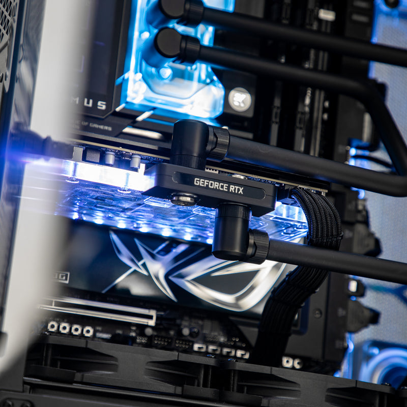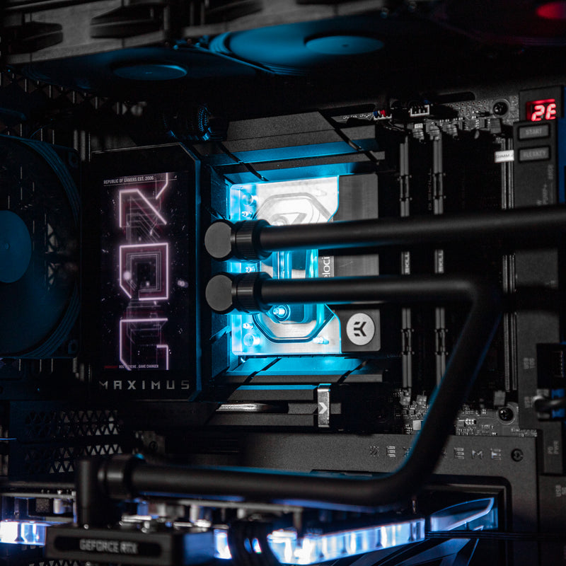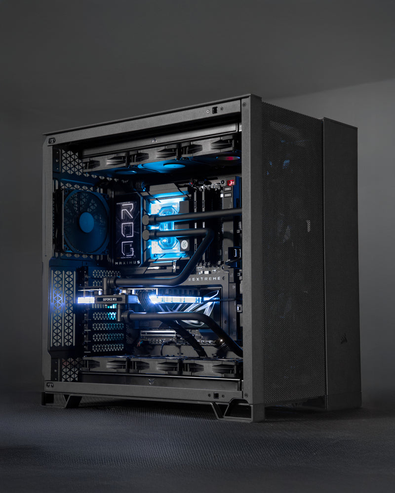 Built on the ASUS ROG Maximus Z890 Extreme motherboard for rock-solid stability and rich connectivity, every watt comes from a Thermaltake Toughpower GF A3 1200 W 80+ Gold PSU, fully modular to reduce clutter. CableMod Pro ModMesh sleeved extensions in stealth black let cables blend seamlessly into the refined interior.