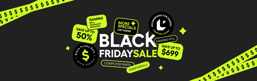 Shop our Black November Specials and get the best deals of the year before anyone else. Plus, with our Black Friday Price Guarantee, you can shop early with total confidence: If Computer Lounge lowers the price again on the item you purchased from us during the promotion, you can claim a Computer Lounge Gift Voucher for the difference. T&Cs apply.