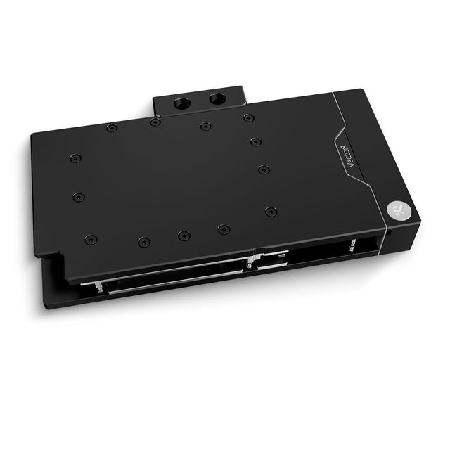 These new Vector² GPU water block and active backplate sets feature a Direct Link flow solution - the first multiple block solution to implement a conventional 4-port terminal layout. That allows serial and parallel connections from adjacent or opposing sides of the block. It was made possible by the addition of a machined brass insert in the terminal itself that diagonally links the water block directly to the active backplate inside the acetal terminal. Direct Link proves invaluable when flexibility is required for the right setup, like in a case of a distribution plate or vertical GPU mount.