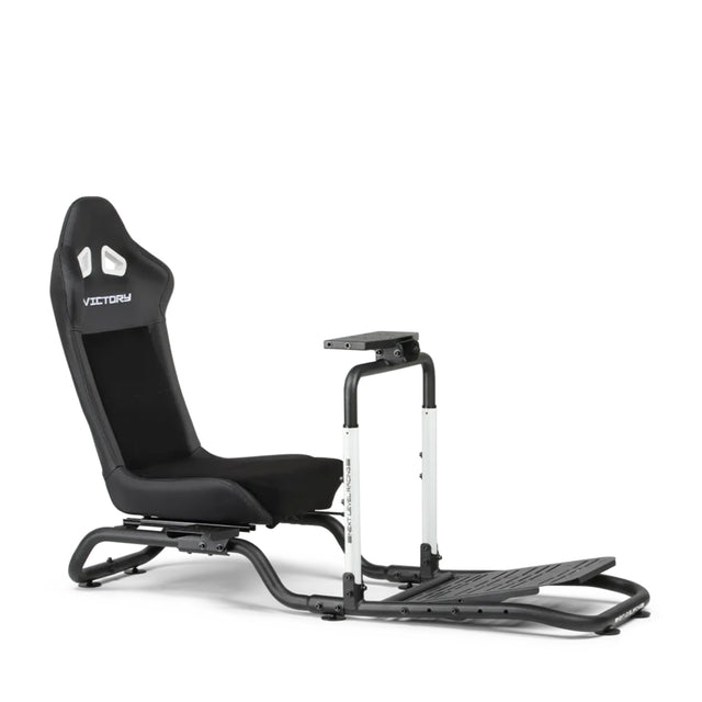 The Next Level Racing® Victory Simulator Cockpit is the perfect entry-level sim racing cockpit, designed for aspiring sim racers seeking a budget-friendly racing simulator setup without compromising on quality. Its tubular frame design and racing-style seat finished in PU leather and suede provide a sturdy and immersive experience. Equipped with an integrated seat slider, it allows easy adjustments for users of all sizes. The Victory Cockpit is compatible with low to mid-range sim racing electronics and supports wheelbases up to 10 N.m, along with various pedals and shifters. It also includes a shifter arm that can be mounted on either the right or left side, providing flexibility based on your preference. With adjustable wheel, pedal, and shifter plates, plus a compact, ergonomic design, this cockpit offers the ultimate GT-style sim racing experience for both beginners and experienced racers alike.