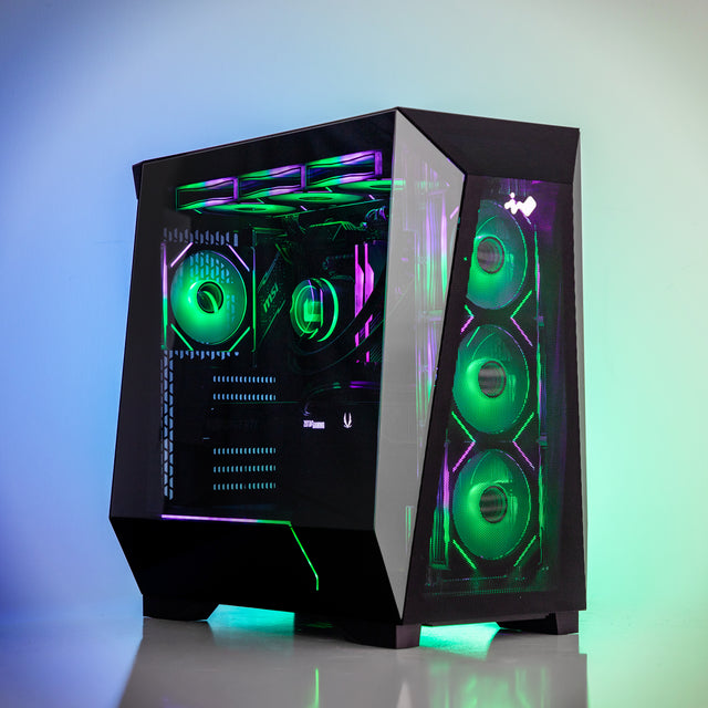 Radiating energy through its illuminated design, the Prism RTX 5070 Gaming PC blends striking visuals with serious capability. Powered by an AMD Ryzen 7 7800X3D and NVIDIA Geforce RTX 5070, it’s tuned for fluid 1080p and confident 1440p performance. Backed by 32GB DDR5 and a 1TB NVMe SSD, it maintains pace through every session.